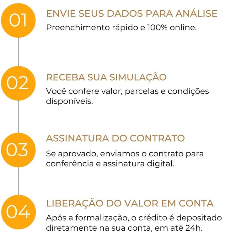 As condições de crédito e taxas de juros podem variar de acordo com a análise individual de cada cliente, da instituição financeira parceira e da margem consignável disponível. Atualmente, as taxas praticadas são: empréstimo consignado INSS a partir de 1,85% ao mês, portabilidade de consignado a partir de 1,80% ao mês, refinanciamento a partir de 1,80% ao mês, empréstimo consignado CLT a partir de 3% ao mês, antecipação do saque FGTS a partir de 1,79% ao mês, Crédito Pessoal a partir de 7,42% a.m. Todas as operações estão sujeitas à análise de crédito e à disponibilidade de margem consignável, conforme regras da instituição financeira contratada. CNPJ: 58.106.007/0001-72 – Unidade São Paulo.