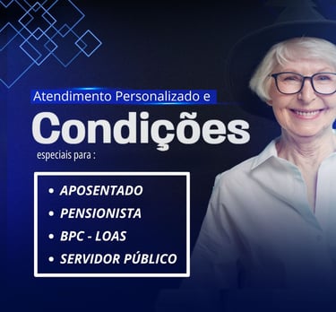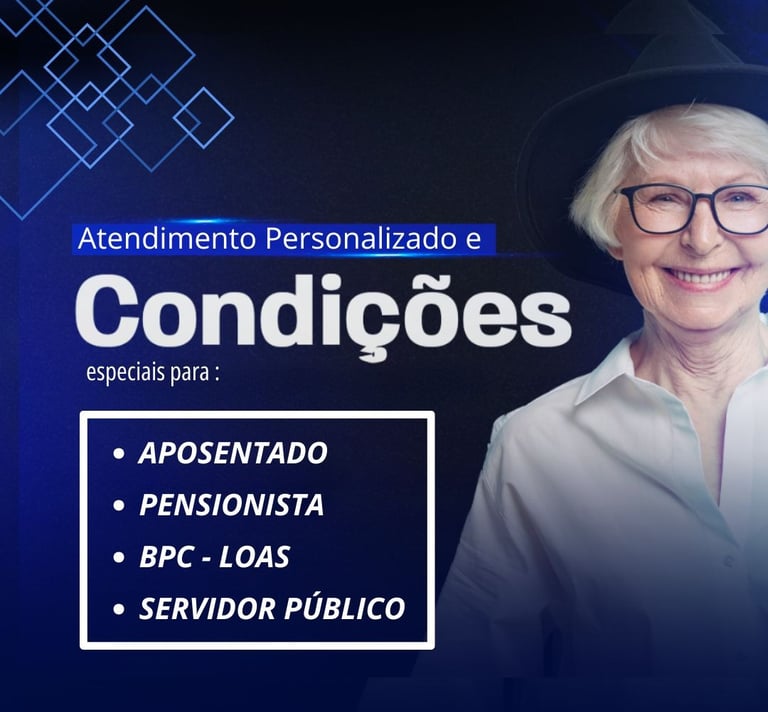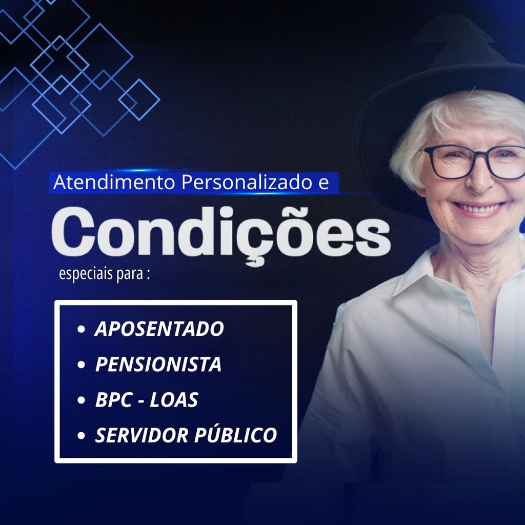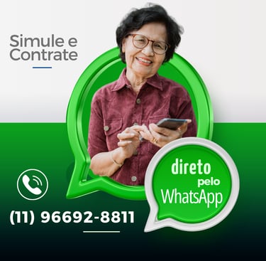 As condições de crédito e taxas de juros podem variar de acordo com a análise individual de cada cliente, da instituição financeira parceira e da margem consignável disponível. Atualmente, as taxas praticadas são: empréstimo consignado INSS a partir de 1,85% ao mês, portabilidade de consignado a partir de 1,80% ao mês, refinanciamento a partir de 1,80% ao mês, empréstimo consignado CLT a partir de 3% ao mês, e antecipação do saque FGTS a partir de 1,30% ao mês. Todas as operações estão sujeitas à análise de crédito e à disponibilidade de margem consignável, conforme regras da instituição financeira contratada. CNPJ: 58.106.007/0001-72 – Unidade São Paulo: Rua Augusto Carlos Bauman, 908 – Sala 07, Térreo – São Paulo/SP.