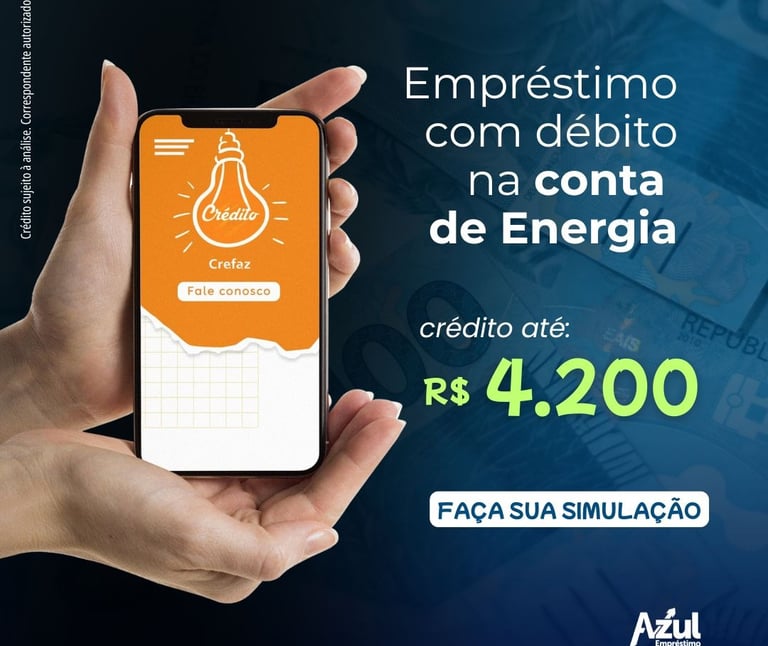 Uma solução prática para quem busca crédito com facilidade! Nesse modelo, as parcelas são debitadas diretamente na sua conta de energia, garantindo mais comodidade no pagamento e evitando atrasos.